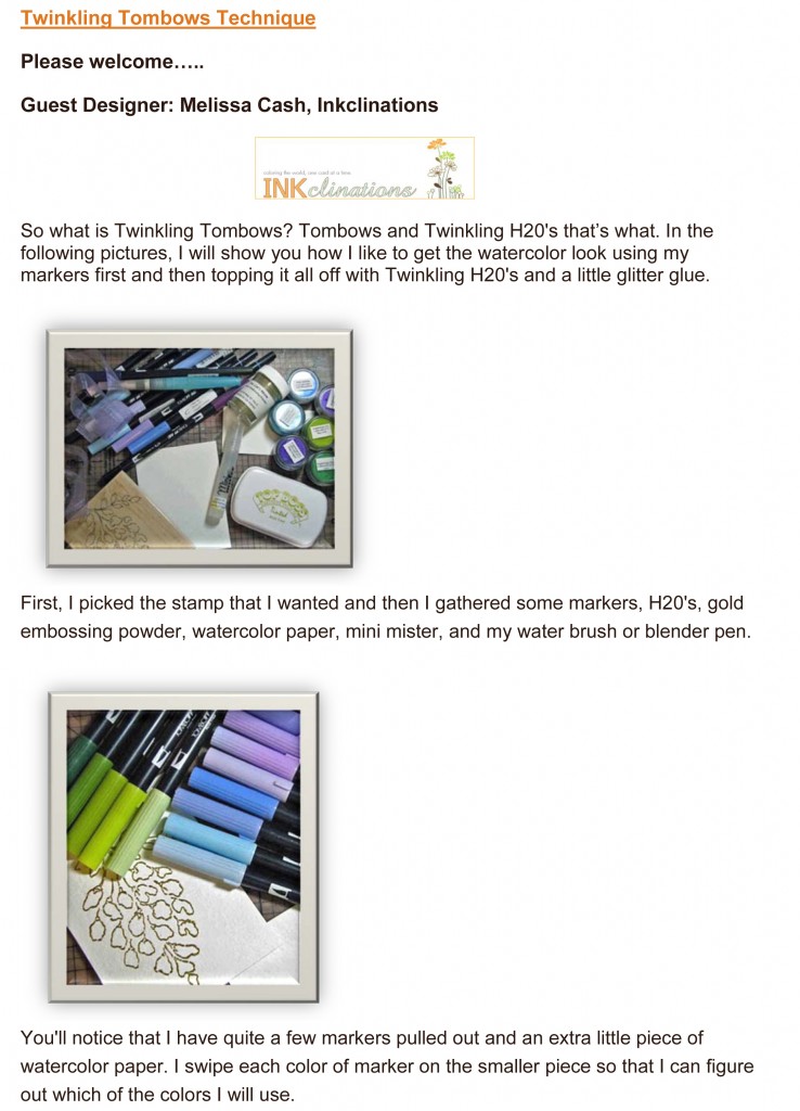 Twinkling Tombows…Guest Designer Melissa Cash 5 April 1, 2011 in Cards & Papercrafting / General / Guest Designers / Tutorials, Tips & Tricks tagged Dual Brush Pens by admin Beautiful Melissa, Thank you…We hope you’ll come back soon.