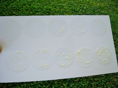 When the glue dries it will be clear and stay tacky for you to add your elements to it. You can see the first ones I did are starting to turn clear.