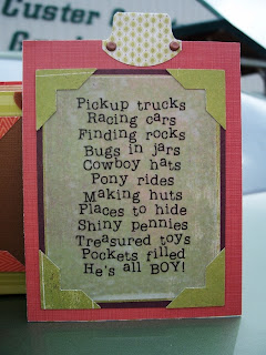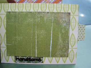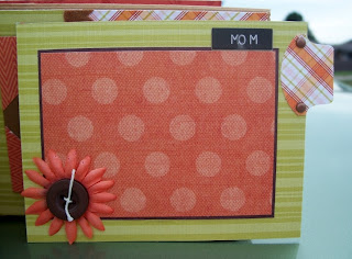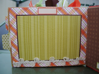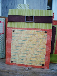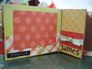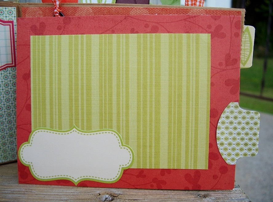 Today I have a fun Baby Boy Paper Bag album that I created for my cousin’s precious baby James David Prouty. My cousin has decorated his baby room in green, burnt orange and chocolate. It was so much fun to make an album in these colors. I just went thru all my stash of papers, stickers and embellishments and picked out everything that matched and then started cutting papers to fit my paper bag album.