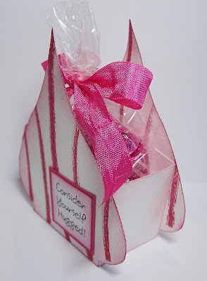 Then just filled cello bag with Hershey Raspberry Hugs and tied off with a bow. Wouldn’t this just brighten your day….”just because”?