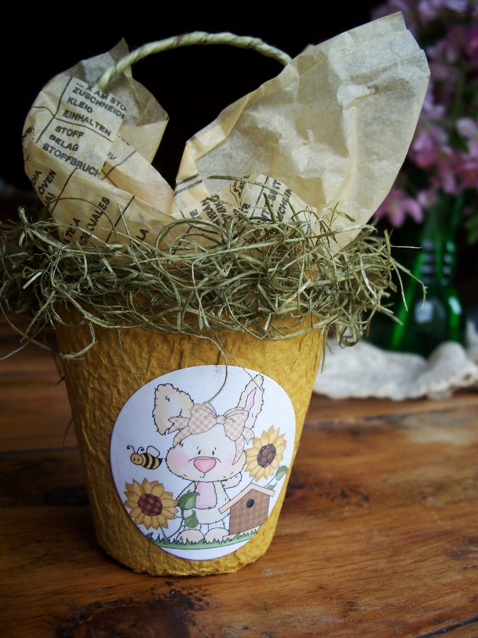 OMG, this the cutest little basket ever! Hmm, I wonder if my dollar store has peat pots. Must check!