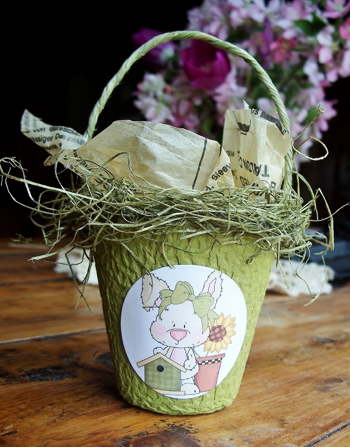 OMG, this the cutest little basket ever! Hmm, I wonder if my dollar store has peat pots. Must check!