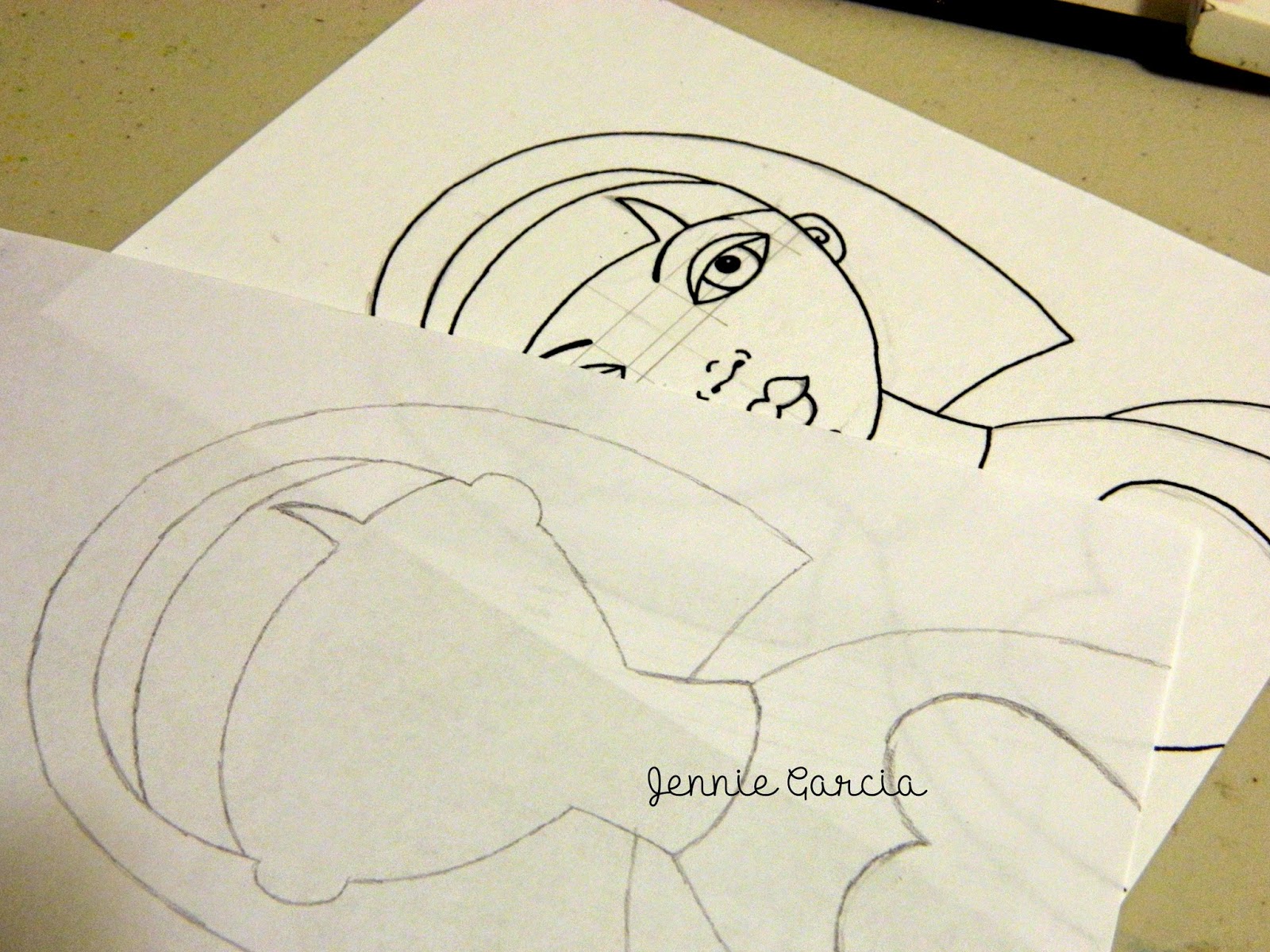 Then I outlined the drawing with the Mono Twin Permanent Marker, my new best friend! After that I used the back of a regular copy paper that I didn’t need anymore to trace the girl. I’m going to used that image to paper piece the girl with magazine paper.