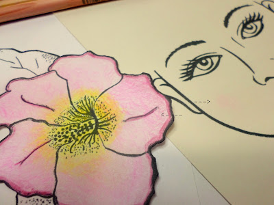 I started by stamping the face on ivory cardstock. Then I stamped the flowers on white cardstock and cut them out.