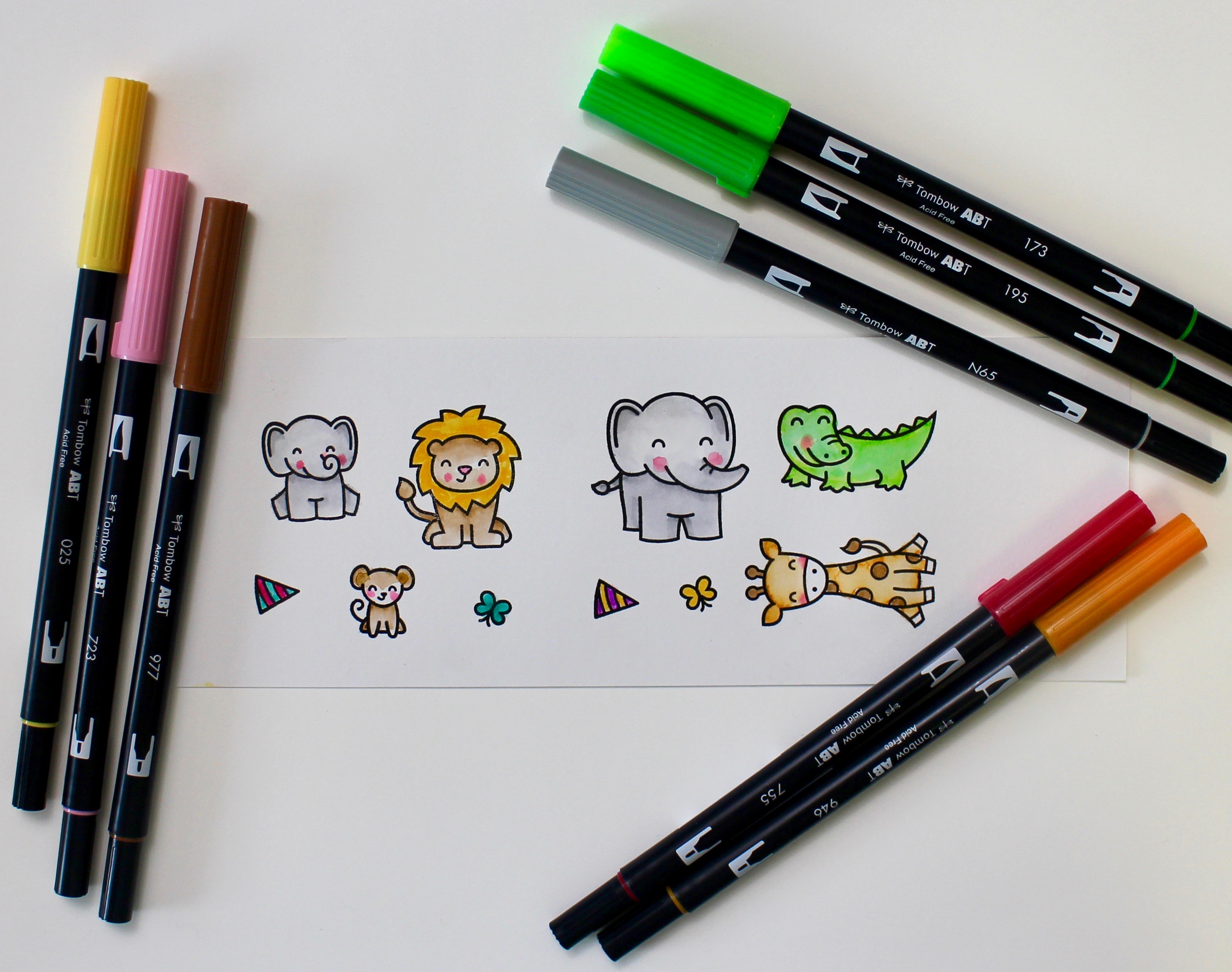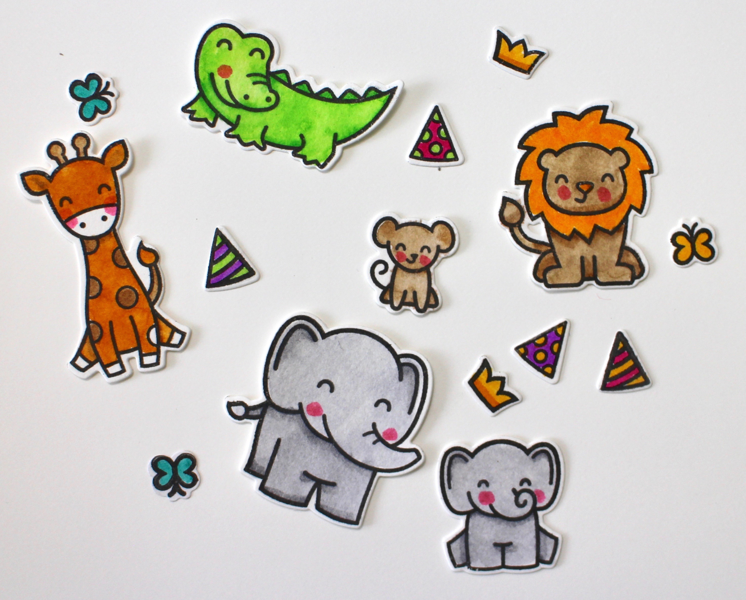 Using the adorable Wild for You stamp set from Lawn Fawn, I stamped and colored the little critters for the card. I colored using the Dual Brush Pens and did a little blending with a water brush.