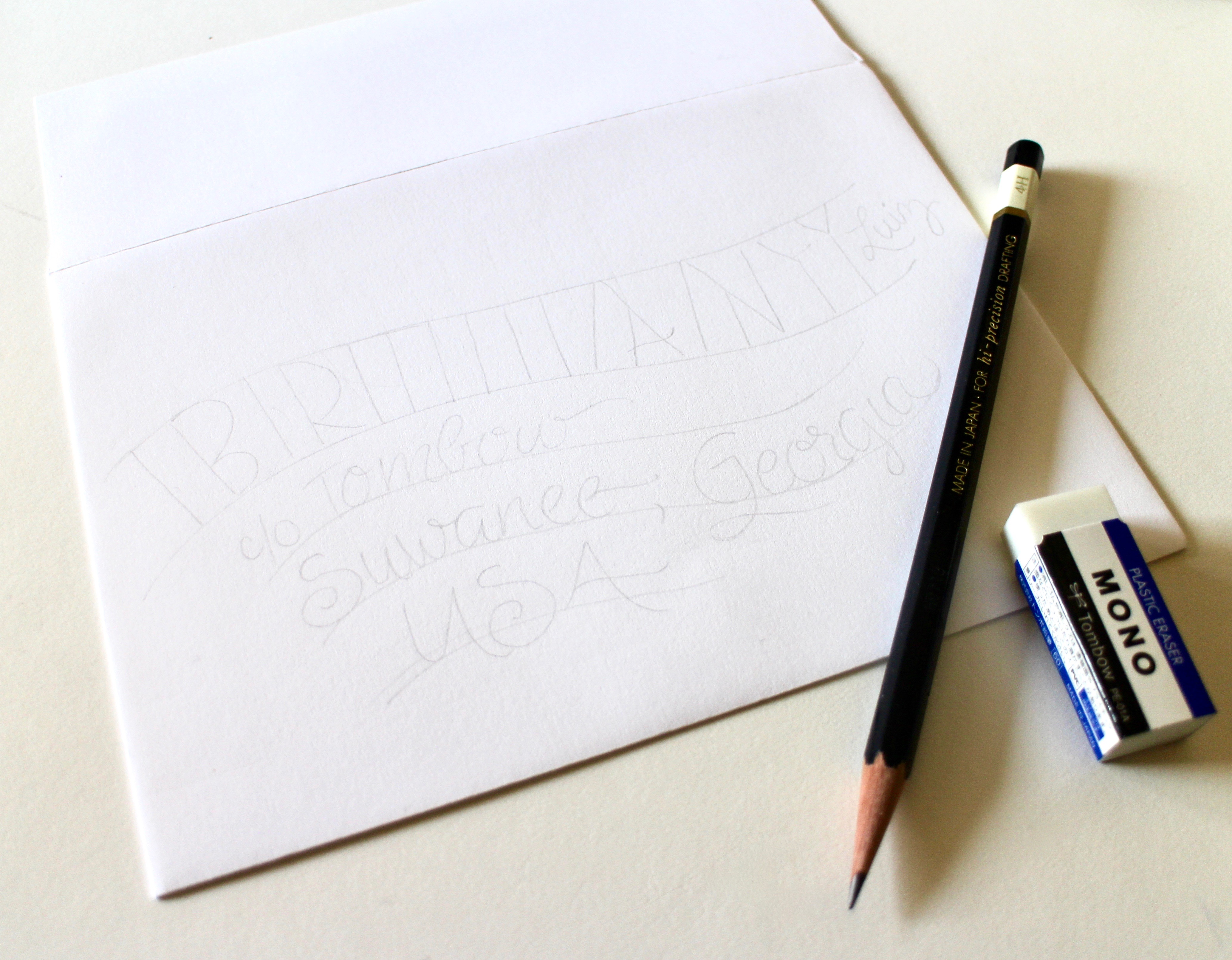 To start, I used the MONO 4H Drawing Pencil and MONO Eraser from the set to plan and sketch out the envelope and card.