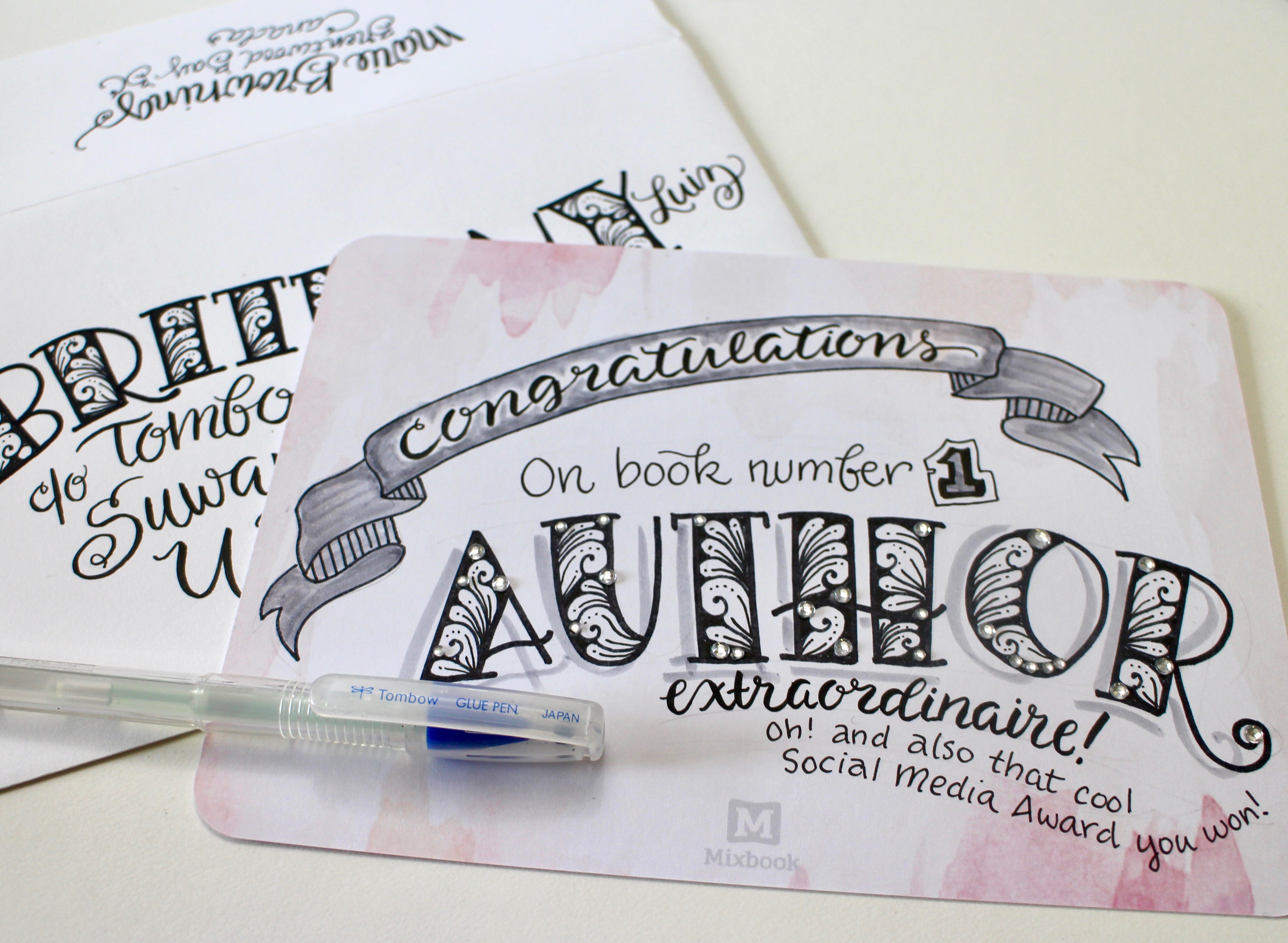 Marie here, and I am thrilled to share some happy mail with you celebrating National Letter Writing Day! I used Tombow’s Beginner Lettering Set and a few other products to create this fun piece of mail. My first step was to choose my stationery; I love the superb quality stationery and envelopes from Mixbook. Thank you Mixbook for sending me the stationery to play with! The paper is a high quality and the markers work beautifully on the paper’s surface.