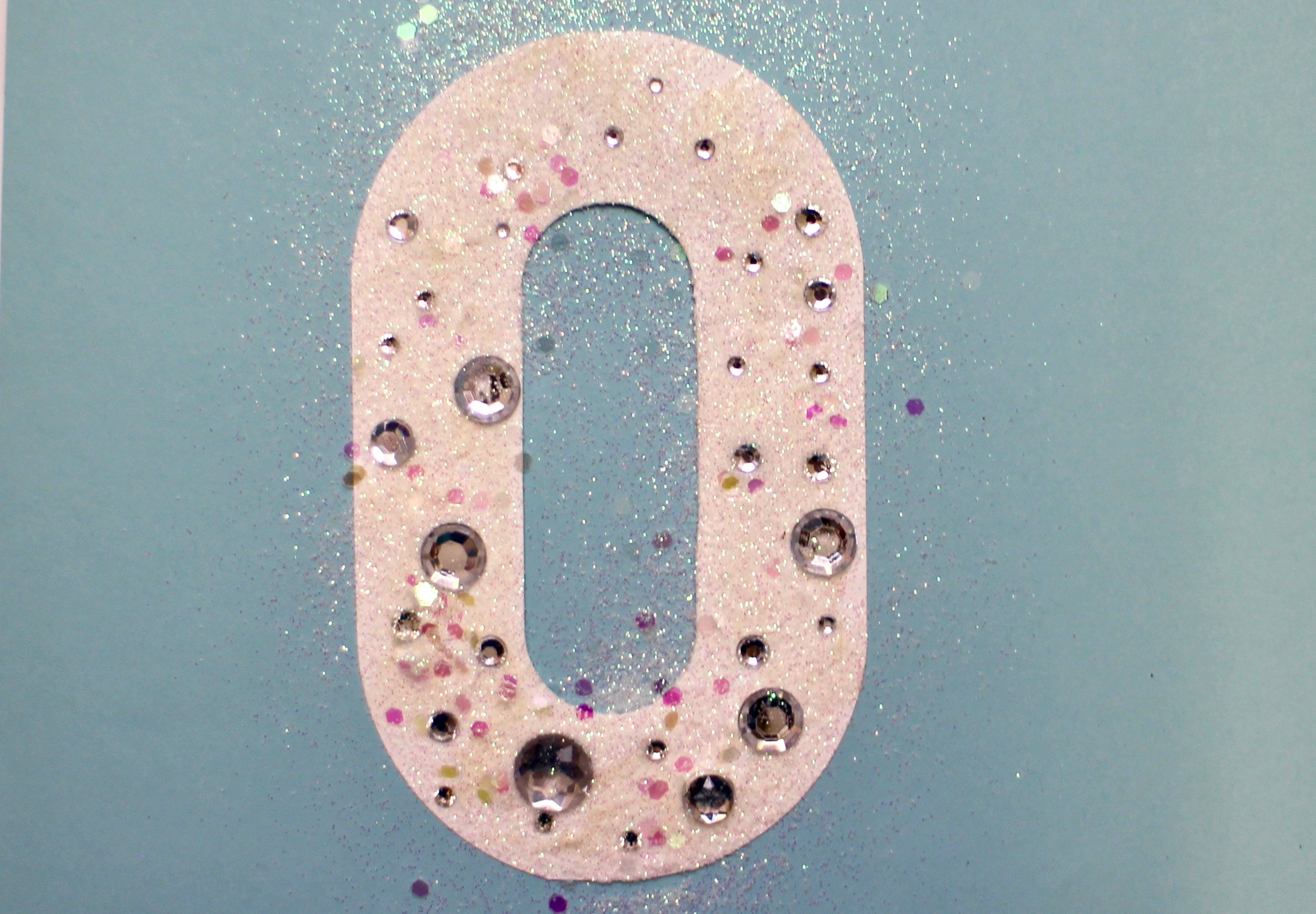 Place rhinestones into the glue. Sprinkle on glitter. You don’t have to hurry these steps, the glue dries sticky so the rhinestones and glitter will adhere even when dry!