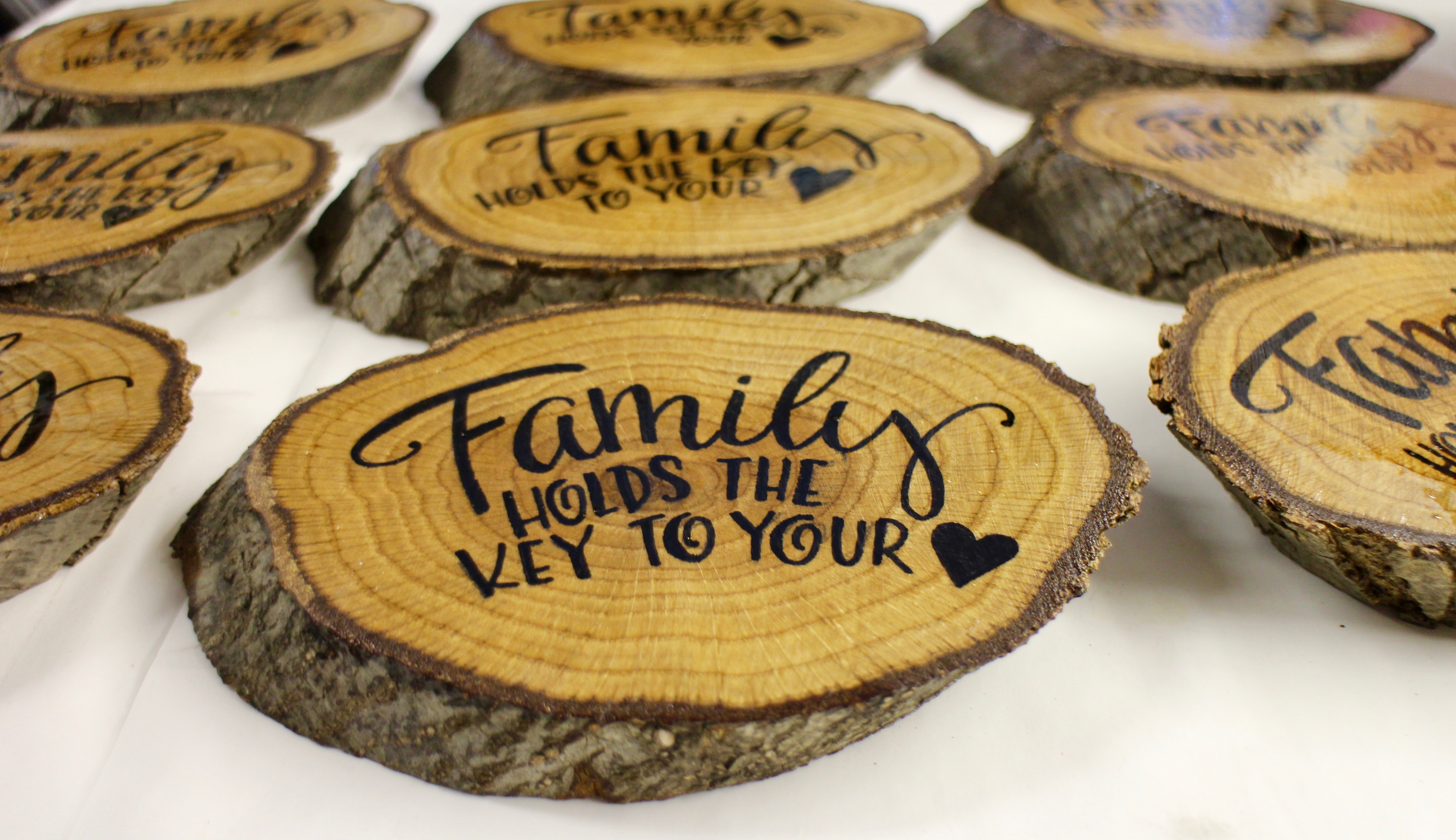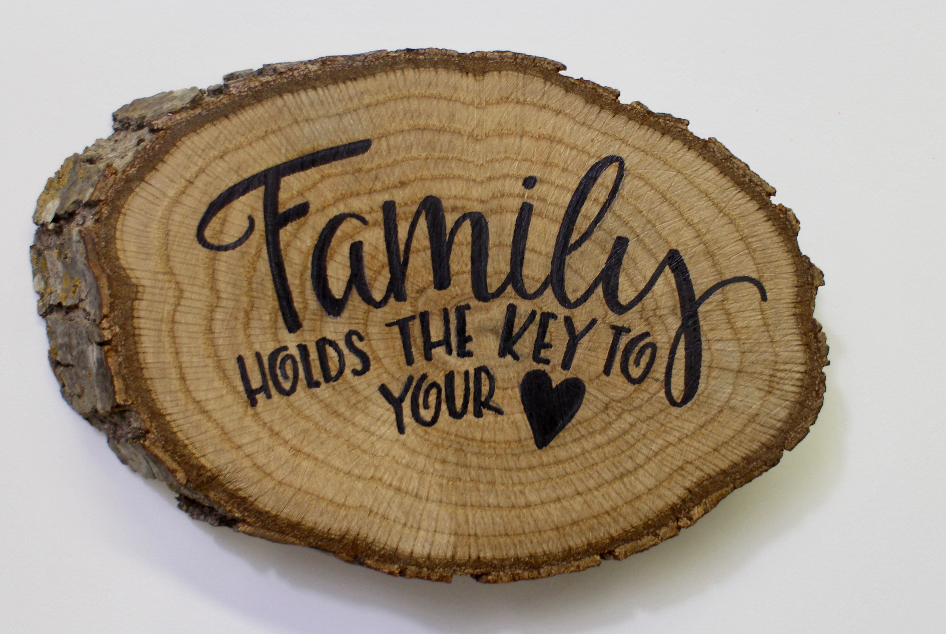 After adding the cup hooks and hanger on the back, my new key holder is finished! It made a great gift for our families as the wood had a very special meaning to us. Hope you enjoyed the lettering on wood steps! Now go forth and create!