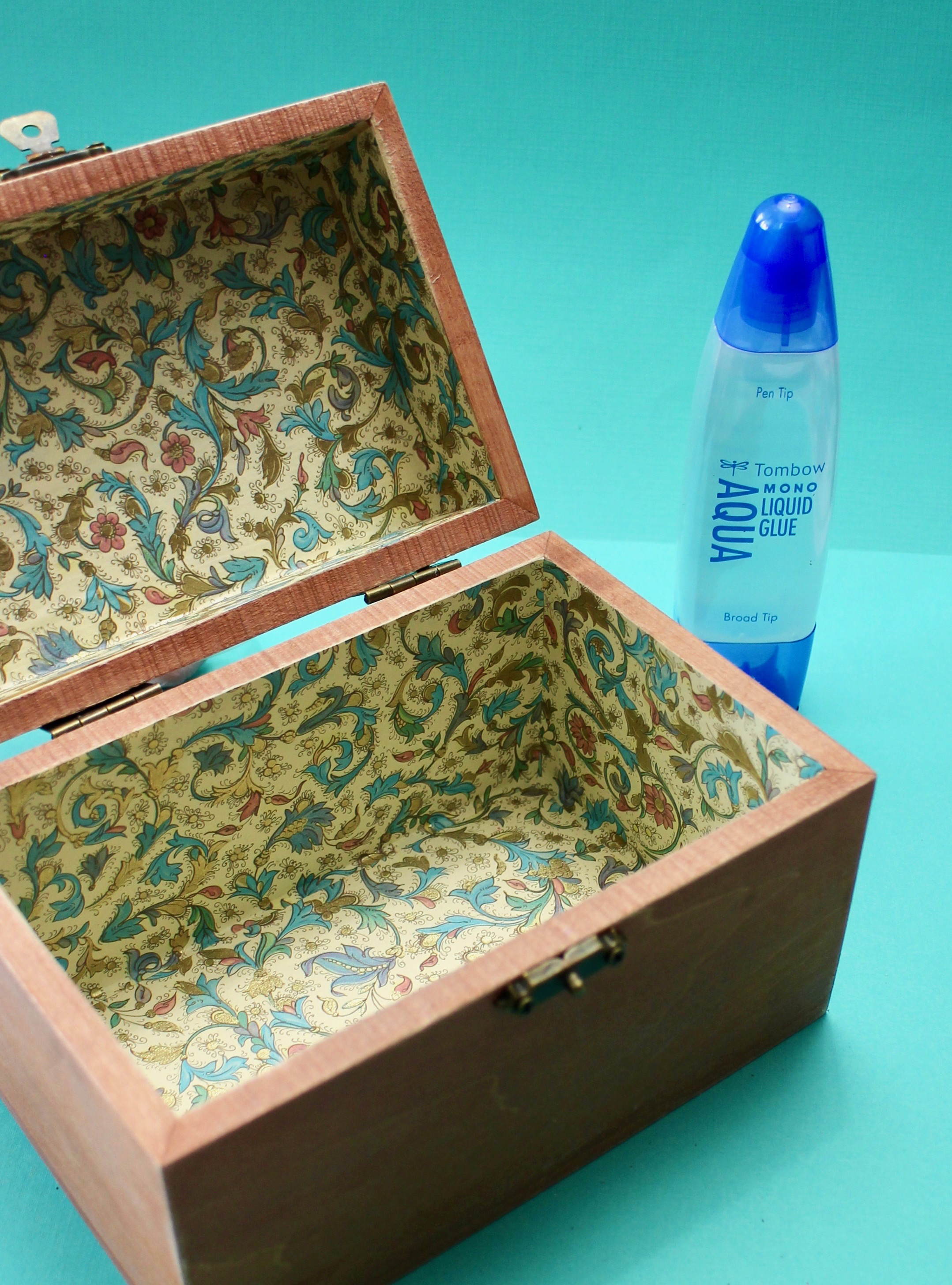 I have also discovered that it is a perfect adhesive for gluing paper to wood, like the paper lined wooden box above. It goes on smooth with no wrinkles and the broad tip applicator means no messy glue brushes to wash out! I like to apply the MONO Aqua to the paper piece starting from the center and working out to the edges. I also cut the paper pieces slightly larger than surface and then using sandpaper to ‘cut’ off excess paper when dry. This creates perfect, clean edges on your projects.