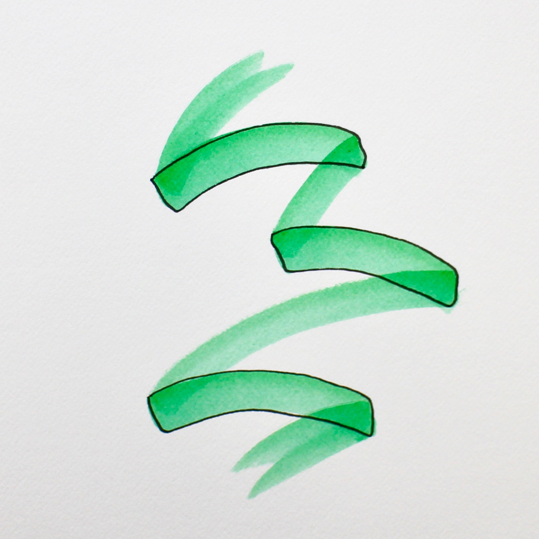 - You will need to know what you are writing in your cascading banner. I’m writing “happily ever after” so I will need three word boxes. With the 243 Mint Dual Brush Pen and using the brush tip, draw the word boxes. Push hard and use the side of the brush tip so you make a thick banner box. Don’t worry, these brush pens can take the pressure!