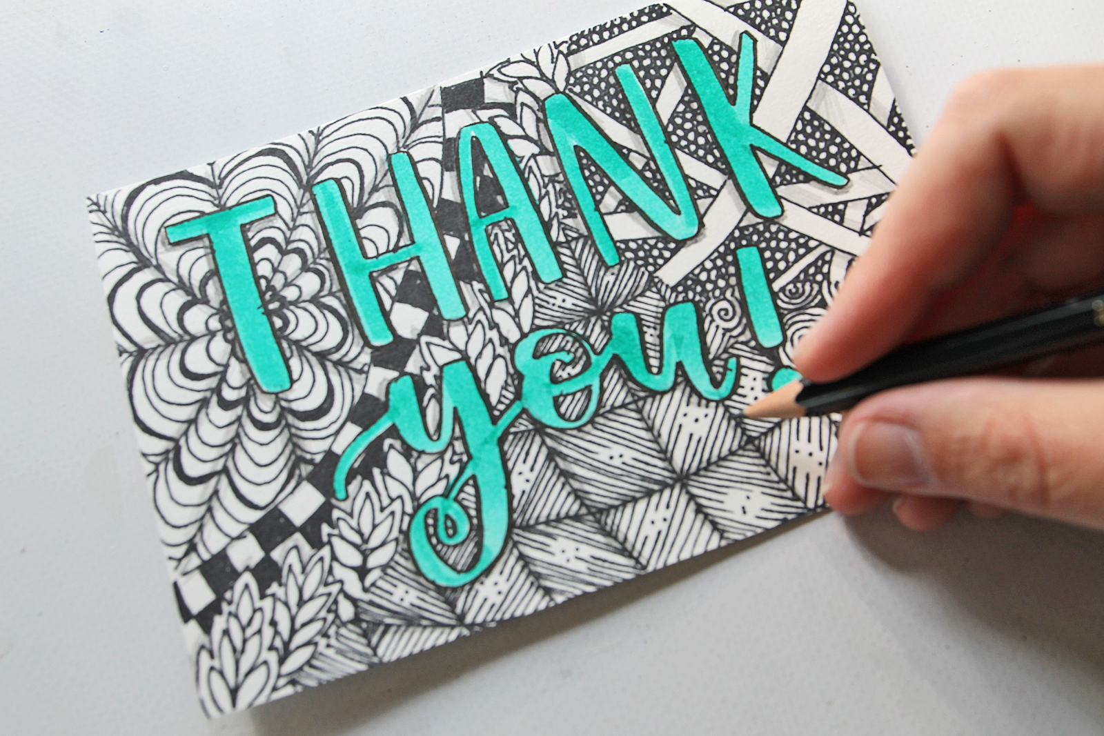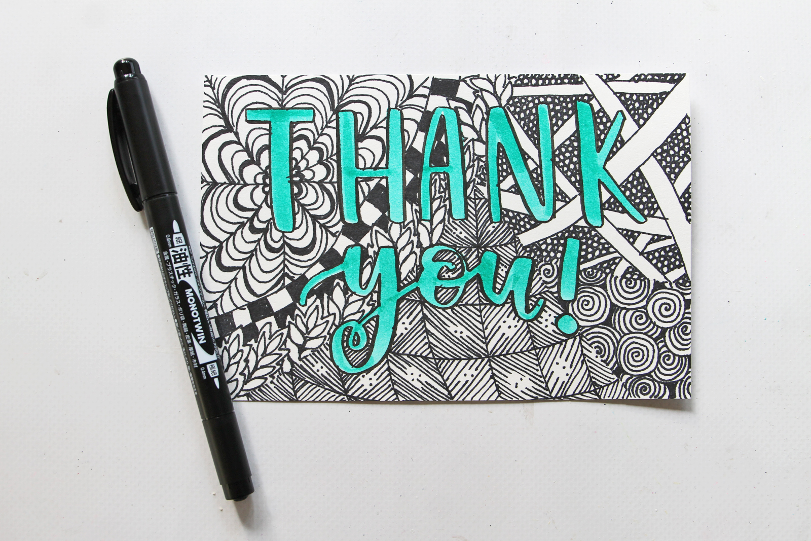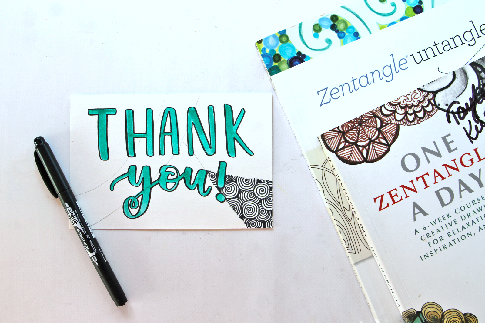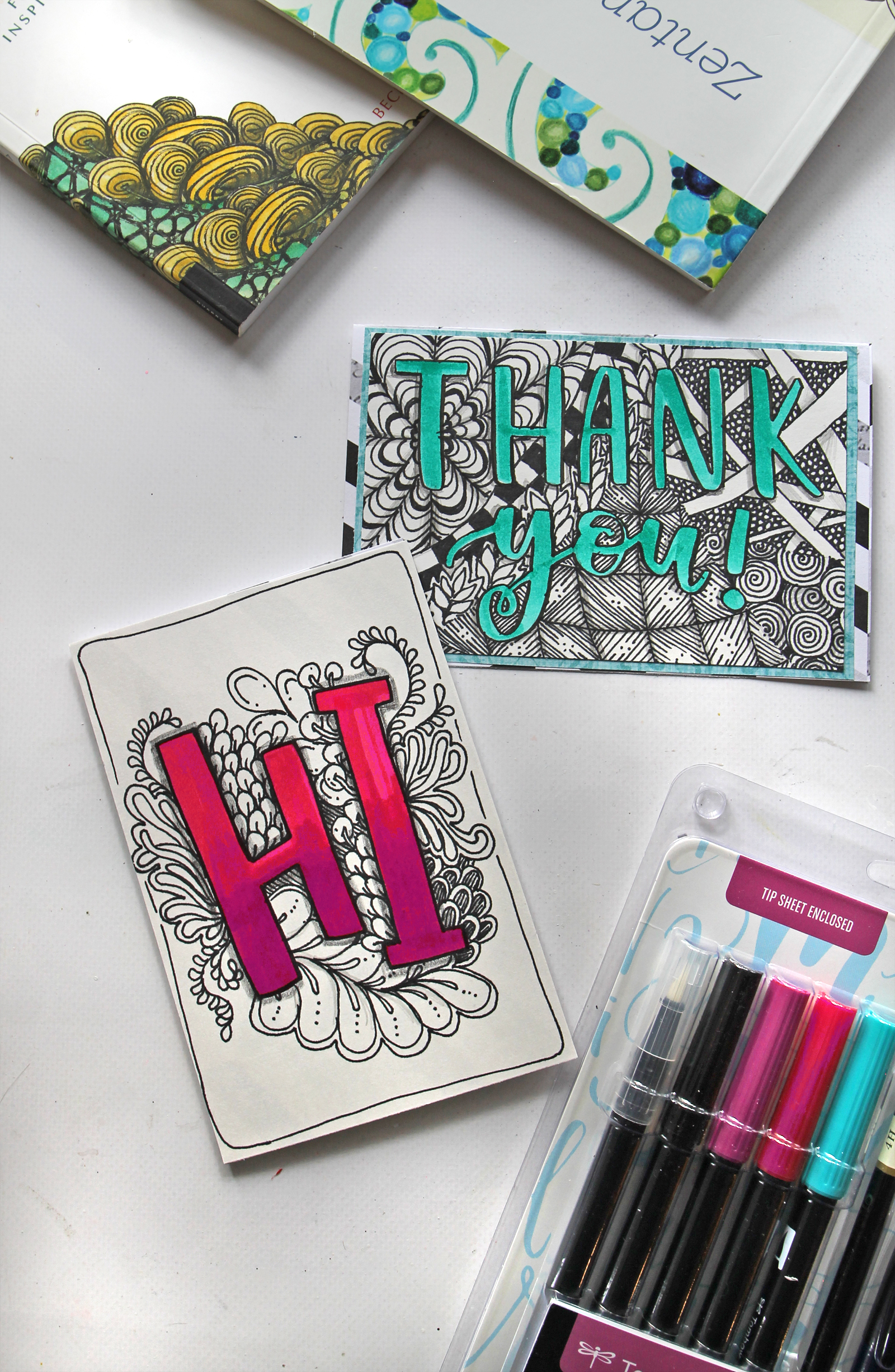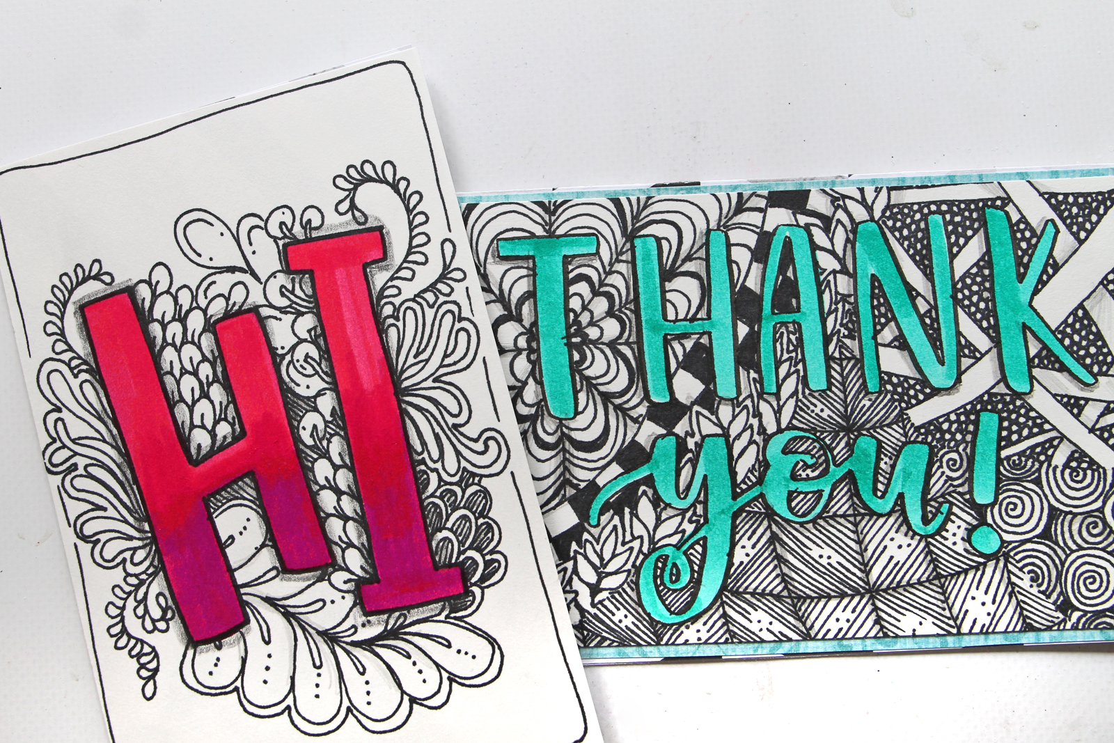 Today, I’ll be combining zentangle-inspired doodles with hand lettering to create some unique greeting cards!