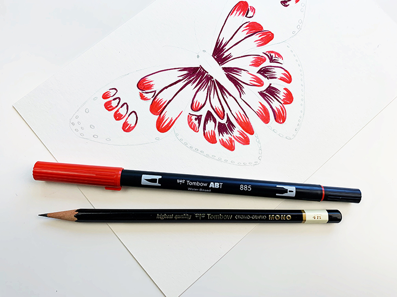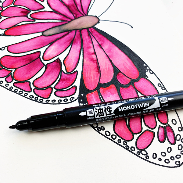 Outline the butterfly using the fine tip of the Tombow MONO Twin Permanent Marker.