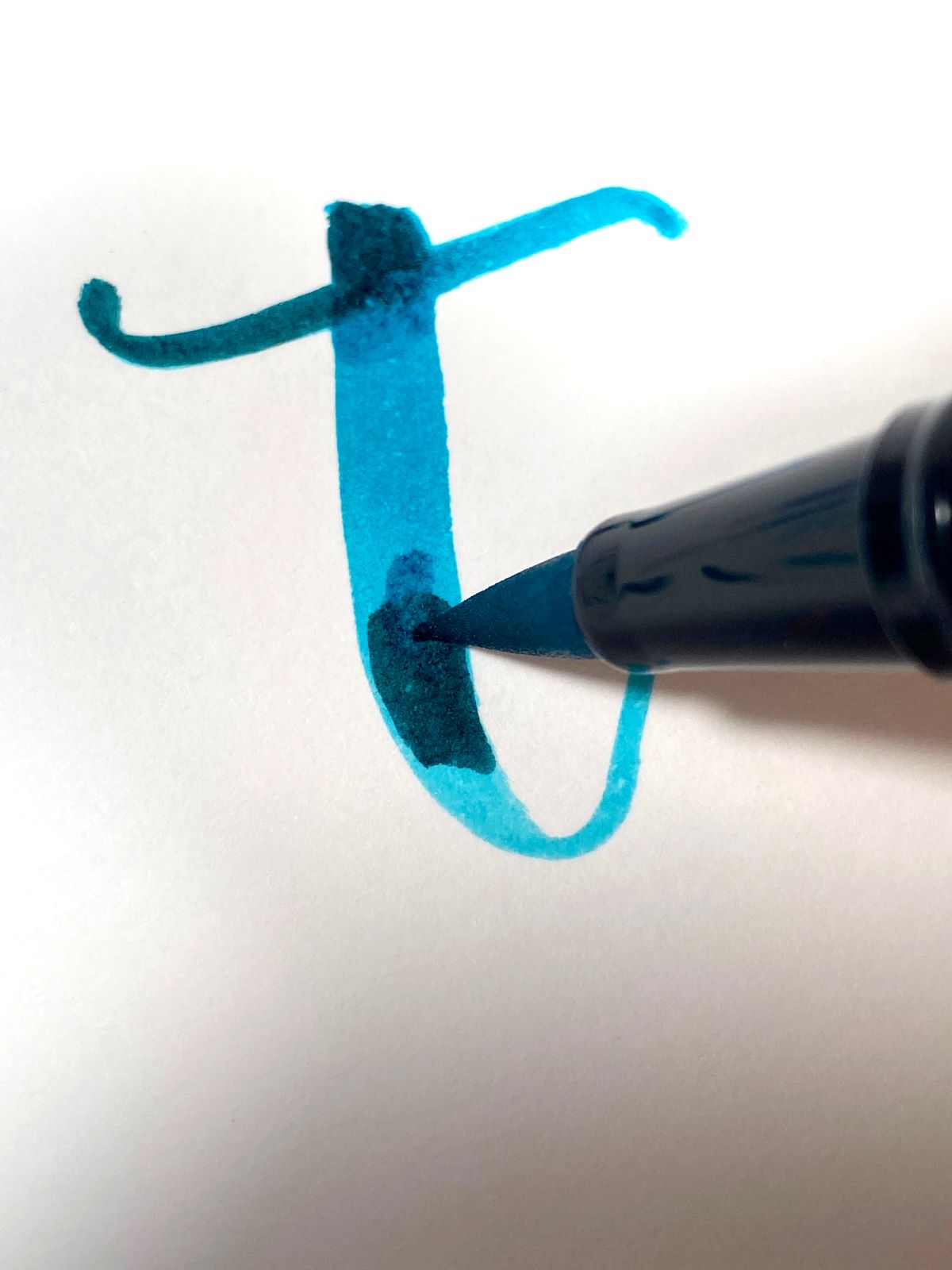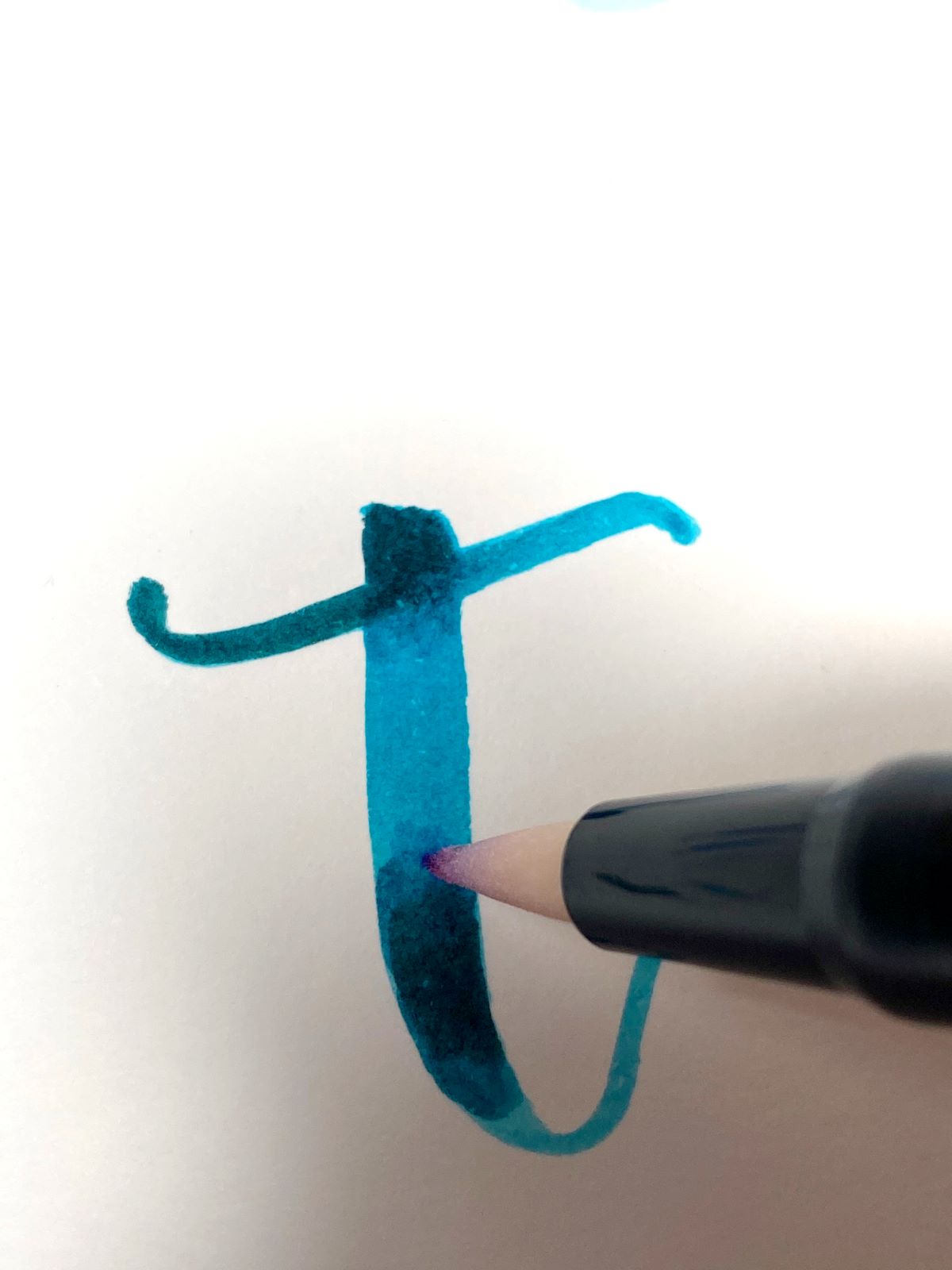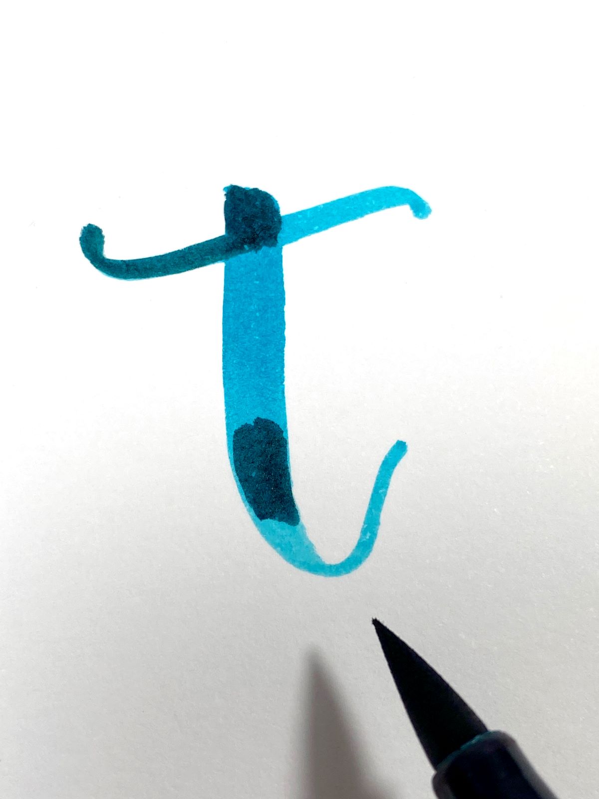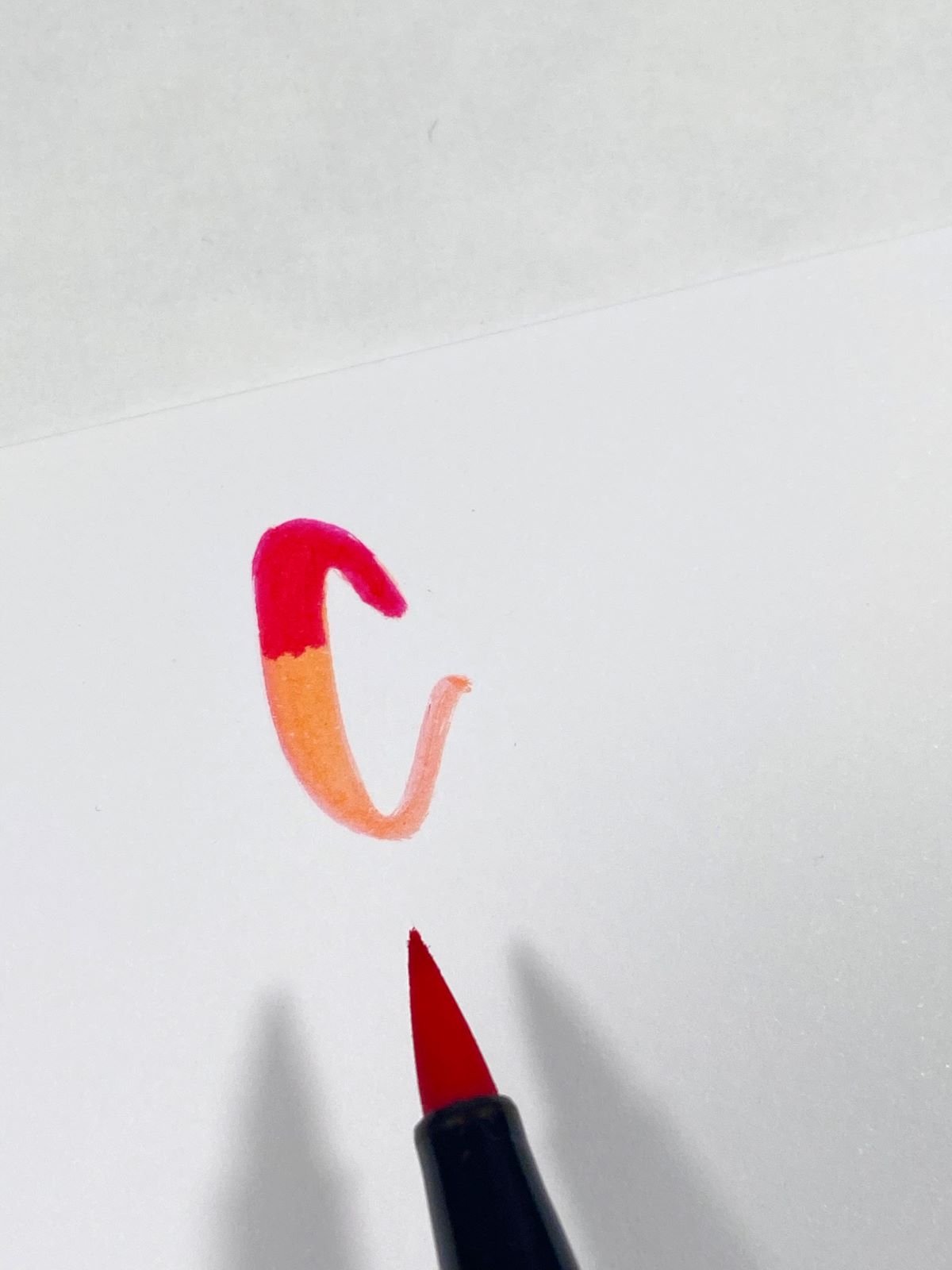 For the first step, add a base of Dual Brush Pen 873 to the paper. Then add Dual Brush Pen 725 to the top half of the letter.