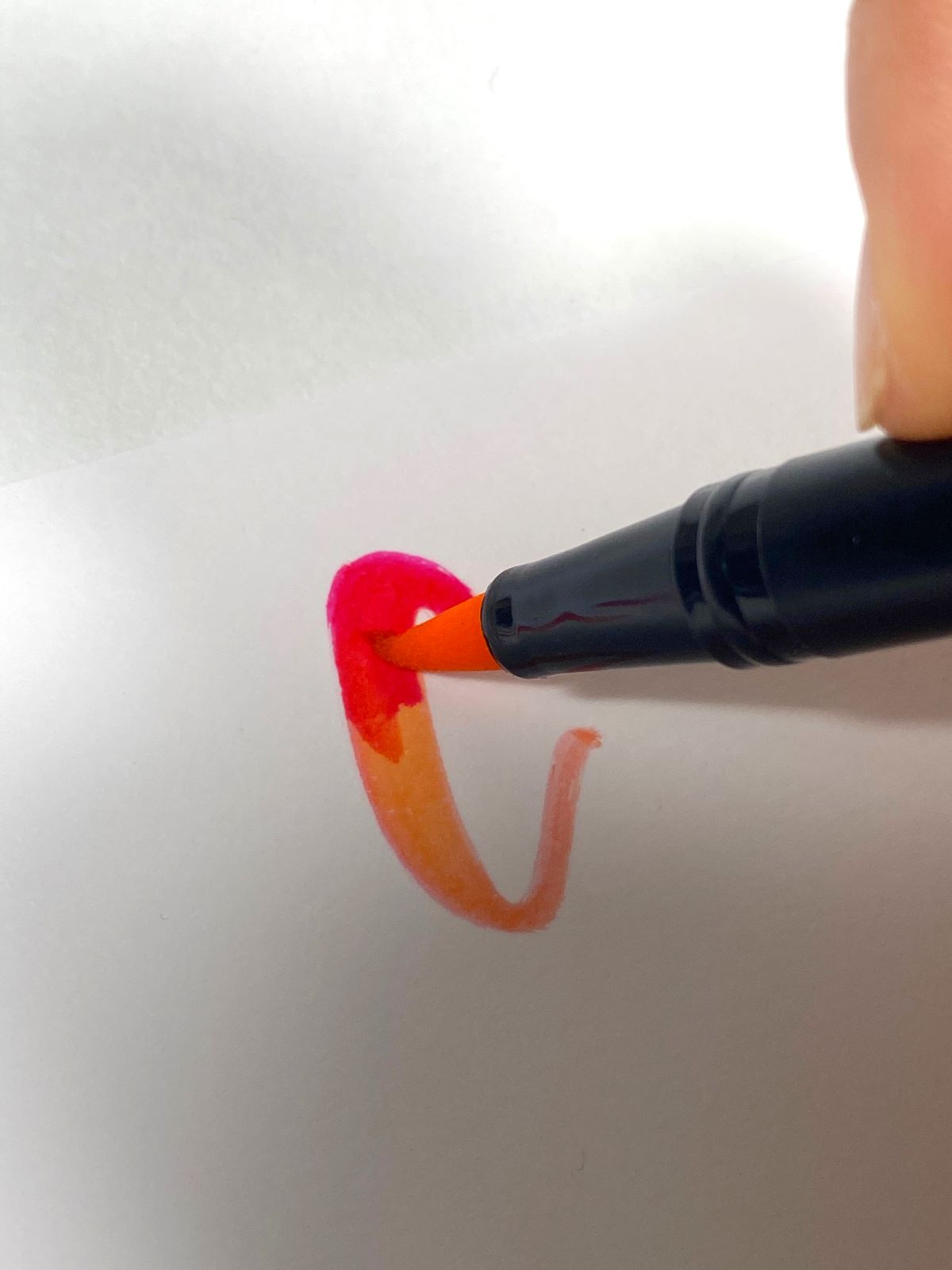 PRO TIP #1: When trying to blend a darker color into a lighter color, your pen will pick up a lot of the ink. Use a scrap piece of paper to scribble off that darker ink. Then, return to blending it into the lighter color. Some Dual Brush Pen colors are very dark and you may need to scribble off the ink after just one stroke.