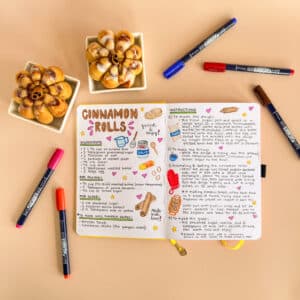 This year, we’re capturing that feeling on paper with a hand-lettered cinnamon roll recipe spread that turns your favorite holiday treat into a piece of art. Created using Tombow Dual Brush Pens and Fudenosuke Brush Pens, this journal page is the perfect way to mix creativity and comfort this season.