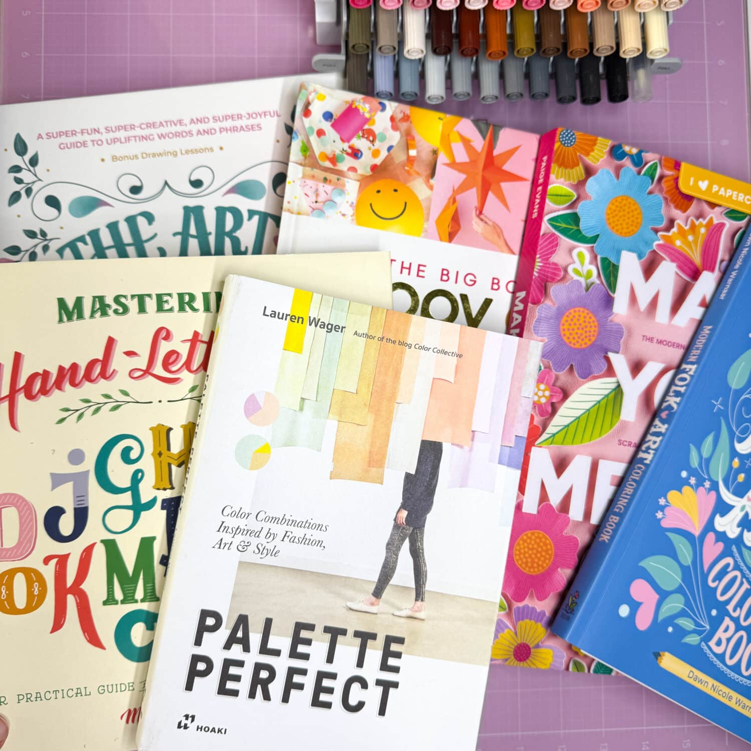 Some of my favorite craft books are The Art of Playful Lettering and Modern Folk Art Coloring Book. I love how these books make me want to open a coloring book and add my own touch—especially when I mix different colors in the detailed designs. Reading Palette Perfect or trying the simple letter-drawing tips in Mastering Hand-Lettering feels like learning right from the authors, right there on my shelf.