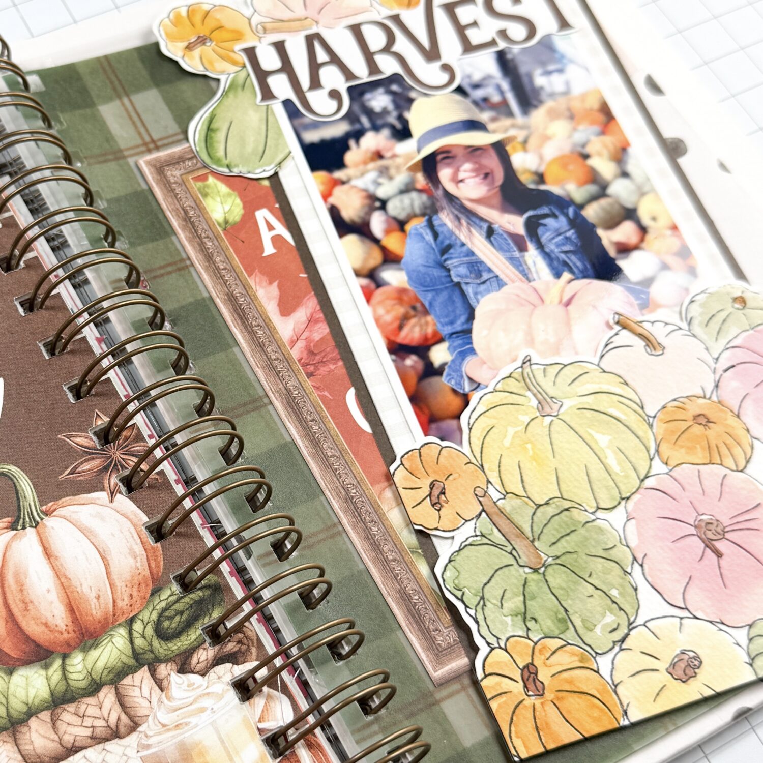 I’ve loved exploring my junk journal this year. For a cozy autumn spread, I watercolored stamped pumpkins using Dual Brush Pen Art Markers, then tucked in a photo of myself from last fall. Messy edges, warm color, and lots of memory-keeping joy.