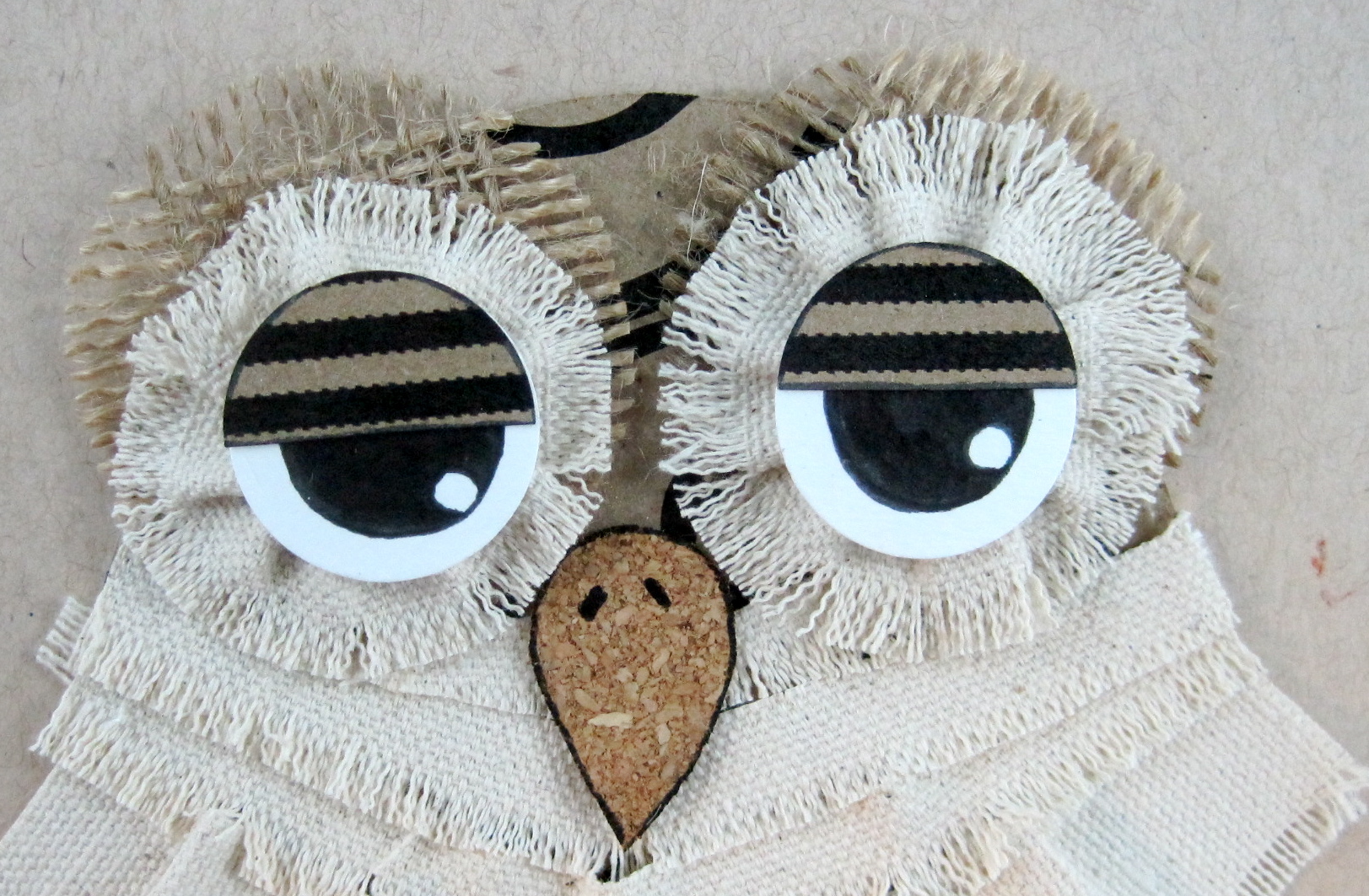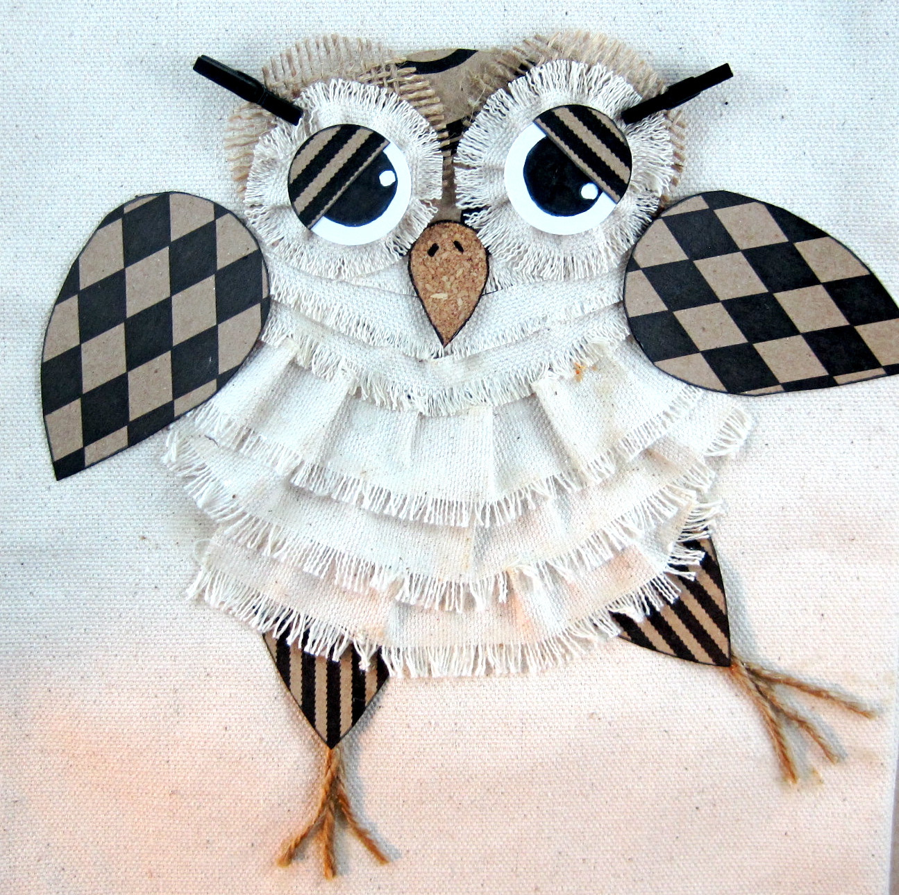 This little owl is the star of the workshop Tombow will be presenting at the Craft and Hobby Association (CHA) in Anaheim later this week. He is put together with MONO Multi Liquid Glue, MONO Aqua Liquid Glue, Dot Adhesive and Power Tabs. He will illustrate how easy it is to use different Tombow adhesives to glue paper to canvas, fabric to paper, jute to fabric, burlap to paper and fabric and cork to paper or fabric. Perfect for all your mixed media projects!