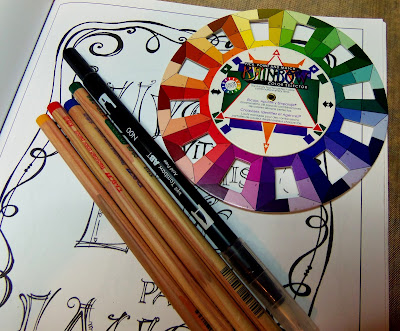 I started by picking a page out of my Zenspirations book and used my color wheel to tell me what Tombow Recycled Colored Pencils to use. I also got my Tombow Blender Pen out, so i could blend my pencil marks away.