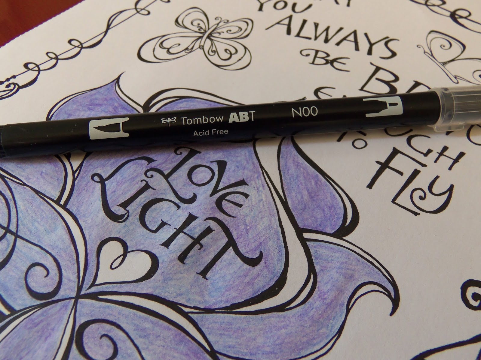 I started by picking a page out of my Zenspirations book and used my color wheel to tell me what Tombow Recycled Colored Pencils to use. I also got my Tombow Blender Pen out, so i could blend my pencil marks away.
