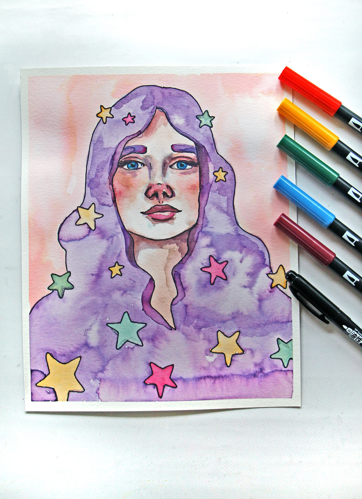 Now, let me show you how I painted this girl using only the five Dual Brush Pen colors from the Watercolor Set!