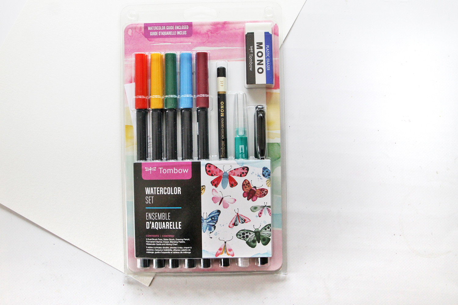 - Tombow Watercolor Set (This comes with: 5 Dual Brush Pens, Medium Water Brush, MONO Drawing Pencil, MONO Twin Permanent Marker, MONO Plastic Eraser, Blending Palette, Watercolor Guide and Mixing Chart.)