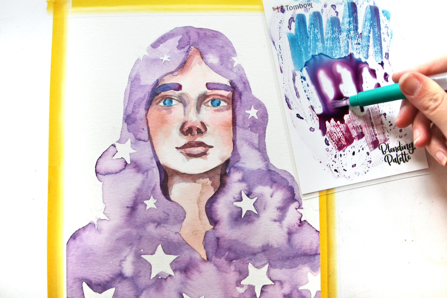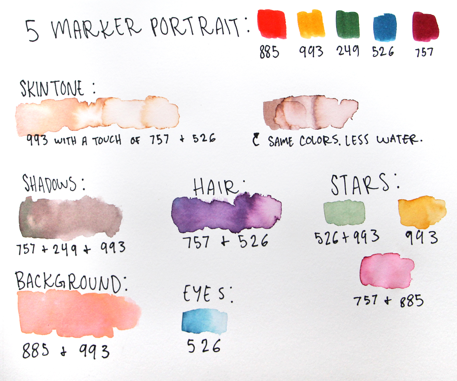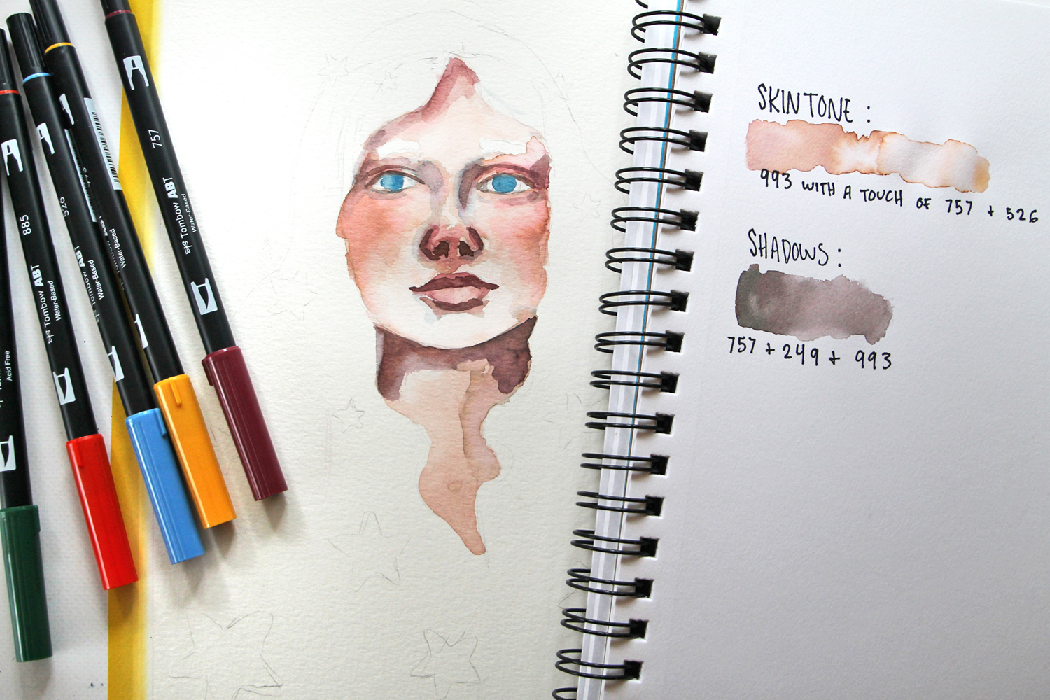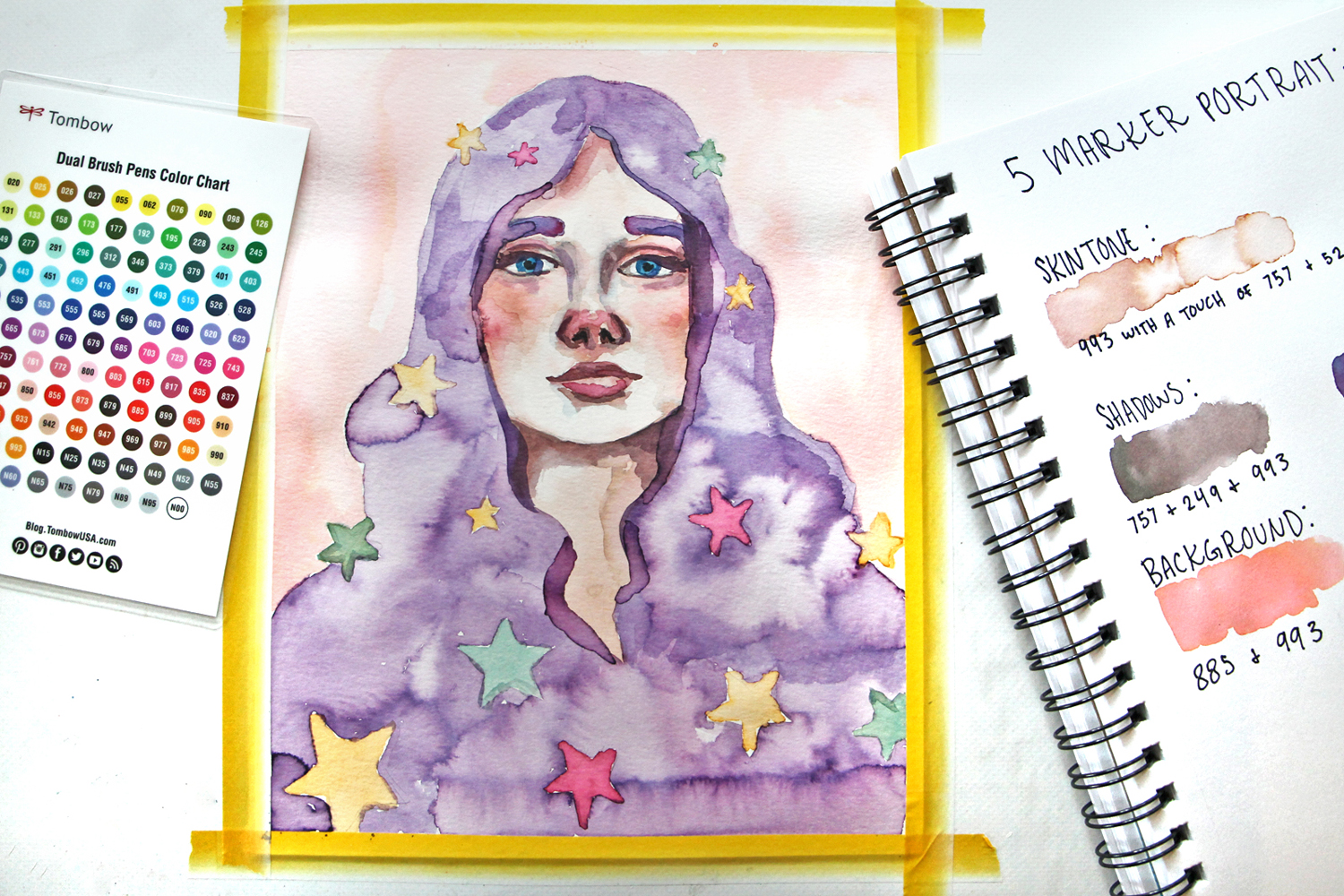 Above, you’ll see the colors I mixed for this portrait using only the five Dual Brush Pens from the Watercolor Set. Below, I’ll show you how I layered these colors for my final piece!