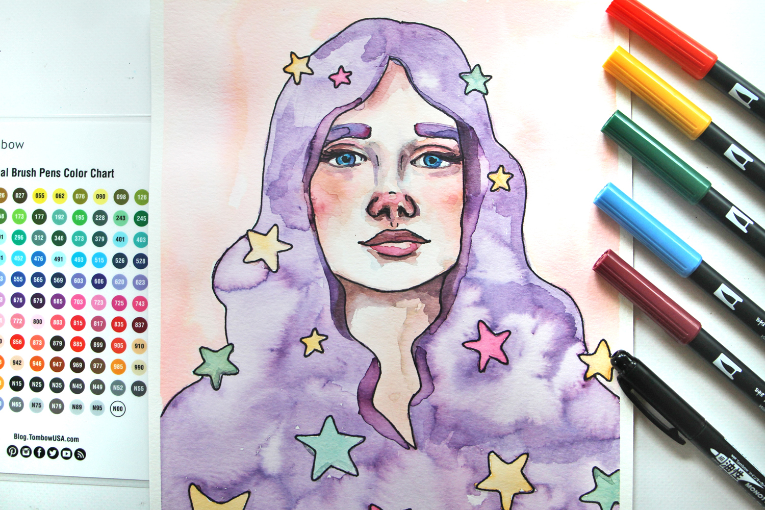 Since this is my first post of 2020 on the Tombow blog, I wanted to take a second to reintroduce myself to you! I’m Katie! I’m an artist living near Seattle, Washington. I love everything creative, but my favorite types of projects are drawing and painting. My personal style is very inspired by nature and space, so you’ll see a lot of animals and galaxies in my work!