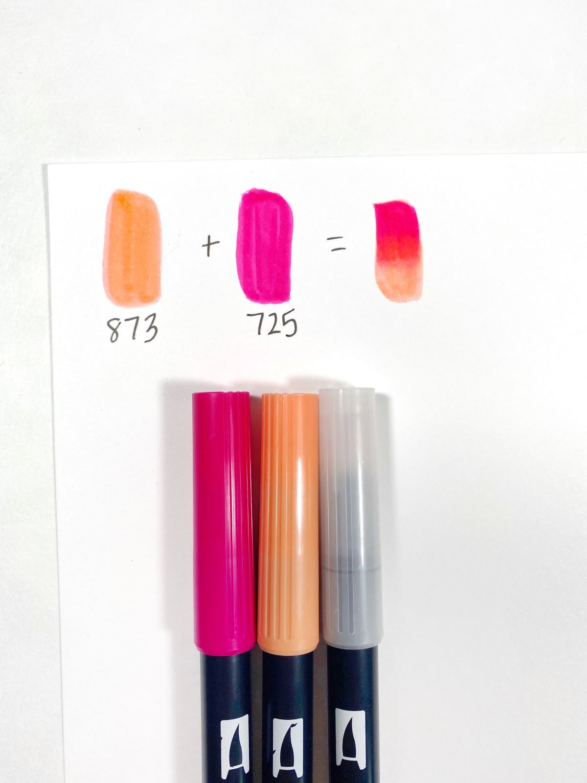 The easiest way to create blended lettering is by using two colors. So, let’s look at this technique first. You’ll need Dual Brush Pens 725 and 873 for this combo and a piece of mixed media paper. I use mixed media paper only for blending because it can handle many layers of color. Bristol paper can also work well.