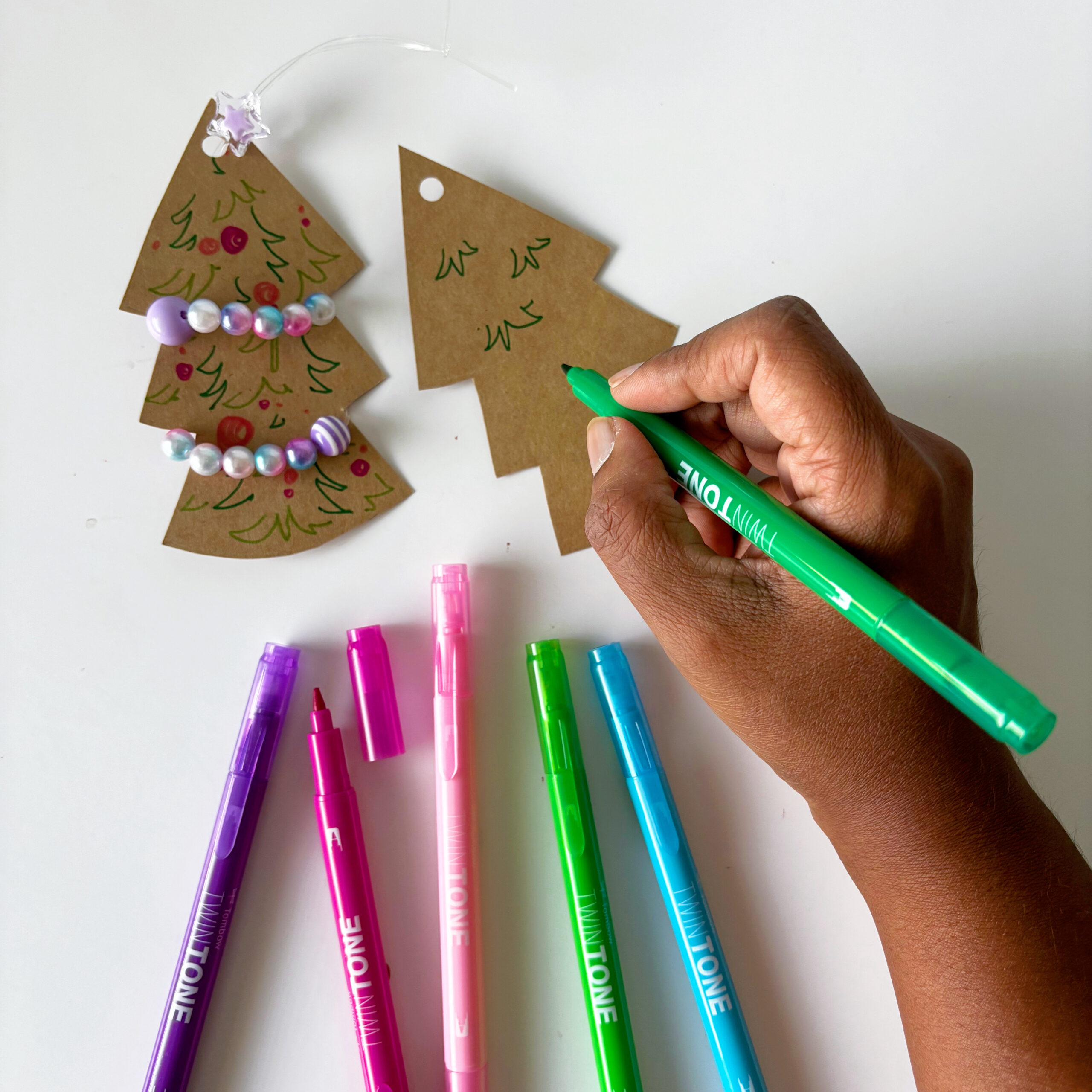 Step 4: Using the TwinTone Marker Set, doodle circles and leaves on each tree.