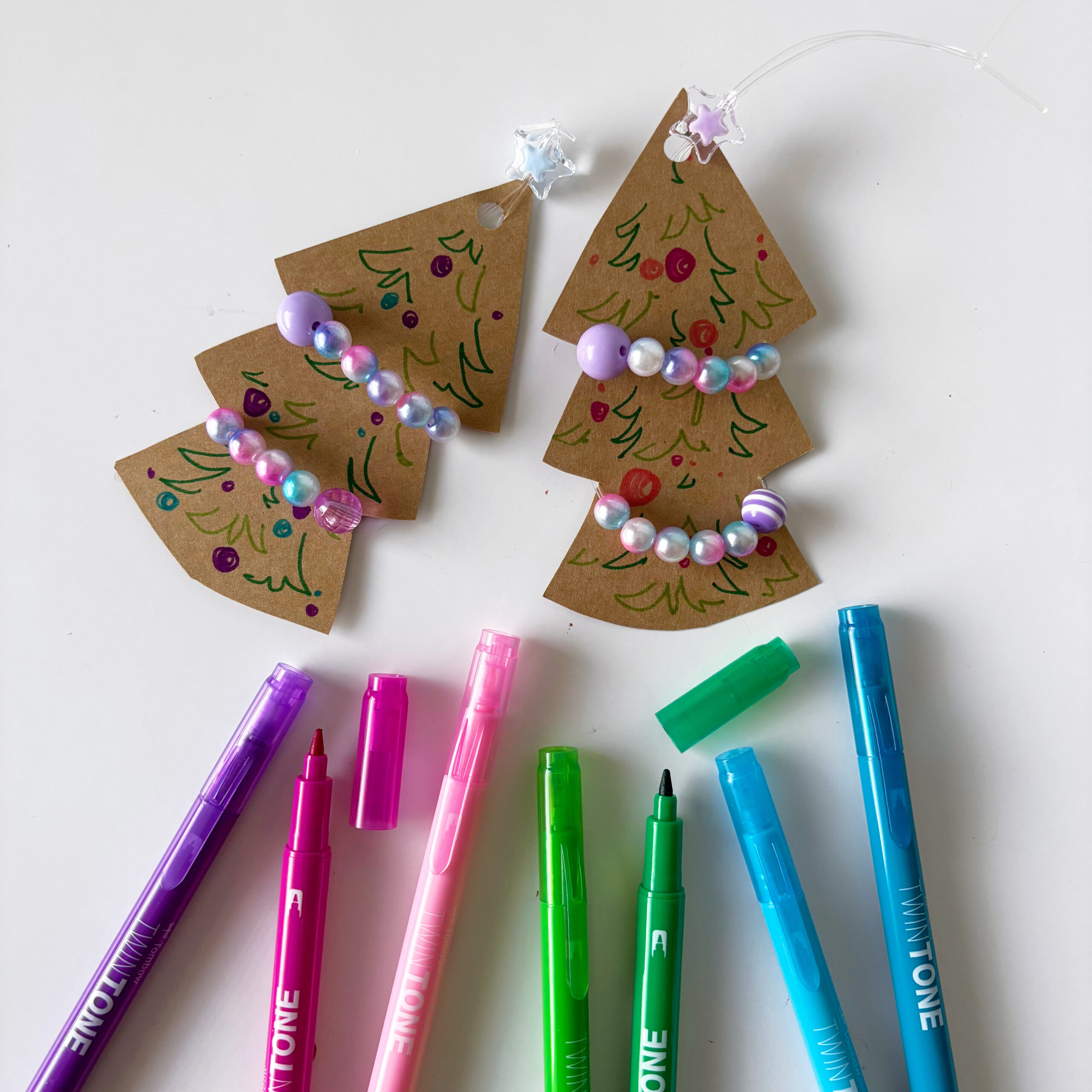 Hi all, it’s Carola and in this post, I’m going to share a step-by-step DIY beaded holiday decoration that you can easily recreate. The beauty of these beaded tree decorations is that you can hang them as tree ornaments, include them in handmade gifts, or use them as table decor. All you need are some basic craft and stationery supplies listed below.
